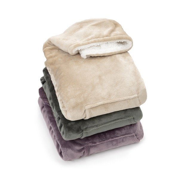 Buzo gigante oversize de flannel fleece liso con bolsillo canguro y capucha con interior de corderito