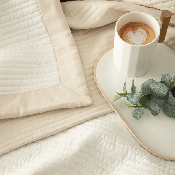 Cover quilt bicolor con un sutil matelaseado rayado y marco a tono EXCELENTE CALIDAD!